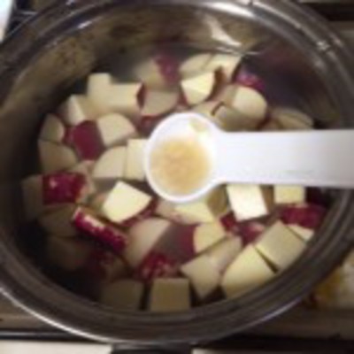 ・さつま芋は皮を少しこそげて1.5cmくらいの角切にする